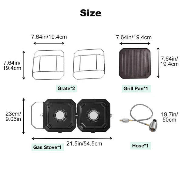Ideal for camping enthusiasts. Cook a variety of foods including eggs, burgers, steaks, breads and vegetables on the folding camping stove grill pan while making coffee or soup on the camping stove side burner. Perfect for picnics, backpacking trips, winter camping trips, tailgate parties and other outdoor cooking.